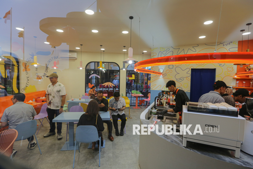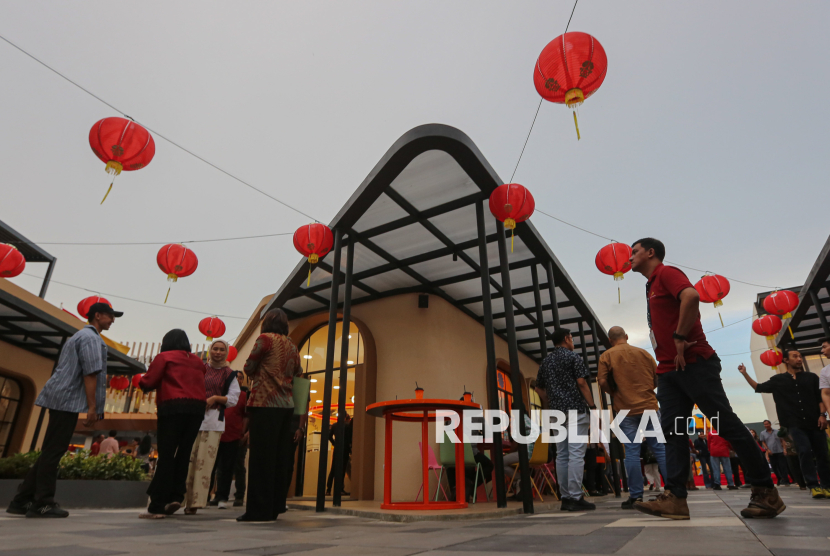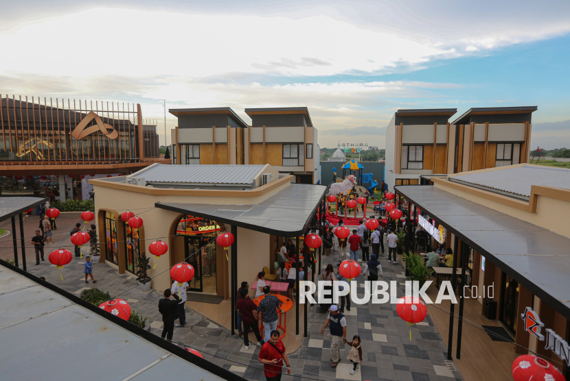 Pengunjung beraktivitas di area tenan kuliner di area Commercial Asthara Skyfront City, Tangerang, Banten, Rabu (25/2/2026). The Skyfront yang merupakan area komersial pertama Asthara Skyfront City secara resmi dibuka dengan pengembangan awal pembangunan area hunian dan infrastruktur seluas 1.100 hektar yang berada di sebelah Bandara International Soekarno-Hatta. Selain itu. Asthara Skyfront City juga menghadirkan destinasi kuliner unggulan dengan nuansa modern di ruang terbuka. (FOTO : Republika/Thoudy Badai)