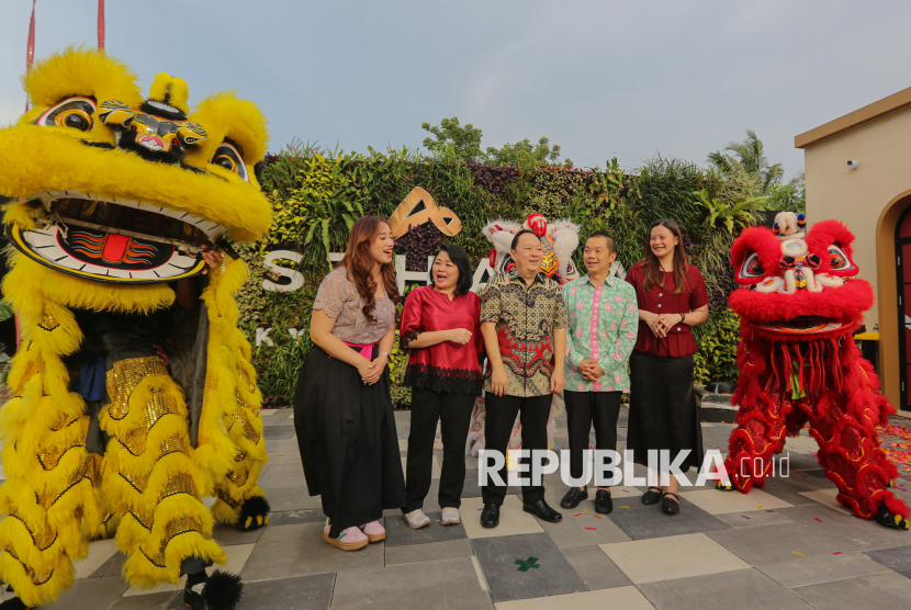 (kiri-kanan) Owner Lad n Lass, Jessica esther, Head of Commercial Dahlia Salim, CEO Asthara Skyfront City Supardi Ang, Owner KWETIAU AHO Willy Yohanes Lim dan GM Magal Group Caecilia ivanna cindhy berbincang saat peluncuran The Skyfront di area Commercial Asthara Skyfront City, Tangerang, Banten, Rabu (25/2/2026). The Skyfront yang merupakan area komersial pertama Asthara Skyfront City secara resmi dibuka dengan pengembangan awal pembangunan area hunian dan infrastruktur seluas 1.100 hektar yang berada di sebelah Bandara International Soekarno-Hatta. Selain itu. Asthara Skyfront City juga menghadirkan destinasi kuliner unggulan dengan nuansa modern di ruang terbuka. (FOTO : Republika/Thoudy Badai)
