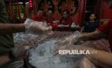 Warga keturunan Tionghoa menyiapkan menu untuk berbuka puasa di Wihara Dharma Bakti, Jakarta, Senin (23/2/2026). Pada bulan suci Ramadhan, Wihara Dharma Bakti rutin membagikan ratusan porsi makanan untuk berbuka puasa bagi umat muslim dan warga sekitar sebagai bentuk toleransi antarumat beragama. (FOTO : Republika/Thoudy Badai)