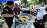 Chef asal Prancis, David Cailleba (55), memasak bala-bala sebagai takjil gratis untuk dibagikan kepada masyarakat di Jalan Laswi, Kota Bandung, Jumat (27/2/2026). Chef bintang lima yang sudah mualaf ini selama 10 hari di bulan Ramadhan akan menyempatkan diri membagikan takjil gratis ke pada masyarakat di sejumlah ruas jalan di Kota Bandung. (FOTO : Edi Yusuf)