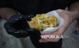 Chef asal Prancis, David Cailleba (55), menyiapkan takjil gratis seperti bala-bala buatannya untuk dibagikan kepada masyarakat di Jalan Laswi, Kota Bandung, Jumat (27/2/2026). Chef bintang lima yang sudah mualaf ini selama 10 hari di bulan Ramadhan akan menyempatkan diri membagikan takjil gratis ke pada masyarakat di sejumlah ruas jalan di Kota Bandung (FOTO : Edi Yusuf)