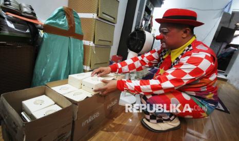 Hendayana sosok Badut Cimahi mempersiapkan makanan untuk takjil yang akan dibagiakan bersama komunitasnya di Cimahi Utara, Kota Cimahi, Selasa (3/3/2026). Kegiatan berbagi takjil ini sebagai bentuk empati untuk masyarakat yang sedang berpuasa Ramadhan sekaligus kampanye perdamaian, agar selalu jaga emosi karena perdamaian itu indah. (FOTO : Edi Yusuf)