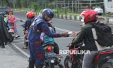 Badut Cimahi dan para cosplayer super hero dari komunitas Badut Cimahi membagikan takjil kepada warga di jalan Aruman, Cimahi Utara, Kota Cimahi, Selasa (3/3/2026). Kegiatan berbagi takjil ini sebagai bentuk empati untuk masyarakat yang sedang berpuasa Ramadhan sekaligus kampanye perdamaian, agar selalu jaga emosi karena perdamaian itu indah. (FOTO : Edi Yusuf)