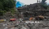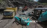 REPUBLIKA.CO.ID, MAGELANG -- Warga mengamati truk yang tertimbun material banjir lahar dingin Gunung Merapi di Sungai Senowo, Dukun, Magelang, Jawa Tengah, Senin (4/3/2026).