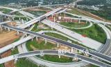 Foto udara suasana proyek Tol Jakarta Cikampek II Selatan di Setu, Kabupaten Bekasi, Jawa Barat, Kamis (5/3/2026). Kementerian Pekerjaan Umum (PU) akan membuka tol sepanjang sekitar 52 kilometer dari Sadang menuju Jakarta itu secara fungsional saat arus balik Lebaran 2026 khusus untuk kendaraan golongan satu. (FOTO : ANTARA FOTO/Darryl Ramadhan)