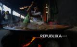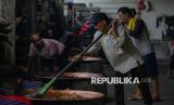 Pekerja menyelesaikan proses pembuatan dodol di rumah produksi Dodol Betawi Sari Rasa Ibu Yuyun, Pasar Minggu, Jakarta Selatan, Selasa (10/3/2026). Jumlah permintaan dodol betawi meningkat saat bulan suci Ramadhan hingga menjelang perayaan hari raya Idul Fitri. Dodol betawi menjadi salah satu hidangan khas Betawi saat hari raya idul fitri. Harga dodol dijual beragam, mulai dari Rp25.000 hingga Rp140.000 tergantung ukuran dan rasa. (FOTO : Republika/Thoudy Badai)
