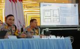Wakapolda Metro Jaya Brigjen Pol Dekananto Eko Purwono (kiri) bersama Kapolres Metro Jakarta Pusat Kombes Pol Reynold Hutagalung (kanan) saat menyampaikan keterangan pers terkait perkembangan penanganan kasus penyiraman cairan berbahaya di Polda Metro Jaya, Jakarta, Senin (16/3/2026). Dalam keterangan pers, Polda Metro Jaya menyampaikan fakta hasil penyelidikan berdasarkan analisis dari 86 titik kamera CCTV yakni terduga pelaku terindikasi sebanyak 4 orang dengan 2 sepeda motor, mengumpulkan barang bukti di TKP, keterangan sejumlah saksi serta mengklarifikasi foto terduga wajah pelaku yang viral di media sosial merupakan hasil rekayasa AI. Selain itu, Polri telah membentuk tim gabungan pengungkapan perkara kasus penyiraman cairan berbahaya terhadap aktivis KontraS, Andrie Yunus. (FOTO : Republika/Thoudy Badai)