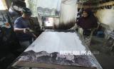REPUBLIKA.CO.ID, CIREBON -- Pekerja melakukan proses pembuatan batik di pabrik batik Rifqy di Trusmi, Kabupaten Cirebon, Selasa (10/3/2026).