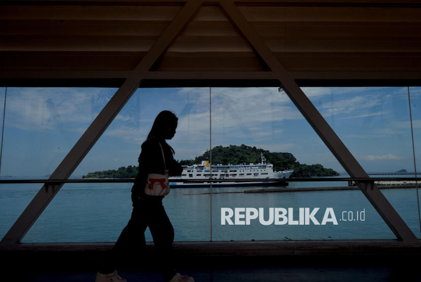 Penumpang berjalan untuk memasuki kapal penyeberangan di Pelabuhan Merak, Banten, Selasa (17/3/2026). Puncak arus mudik Idul Fitri 2026 di Pelabuhan Merak terjadi pada Rabu (18/3) dinihari. Ribuan kendaraan antre untuk menyeberang menuju Pelabuhan Bakauheni Lampung. (FOTO : Edwin Putranto/Republika)