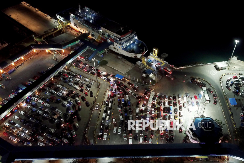 Puncak arus mudik Idul Fitri 2026 di Pelabuhan Merak terjadi pada Kamis (18/3) dinihari. Ribuan kendaraan antre untuk menyeberang menuju Pelabuhan Bakauheni Lampung.