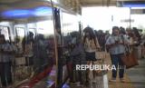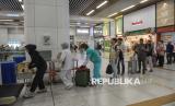 REPUBLIKA.CO.ID, JAKARTA -- Penumpang kereta cepat Whoosh melakukan check-in untuk memasuki peron di Stasiun KCIC Halim, Jakarta, Rabu (18/3/2026).