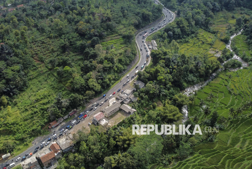 REPUBLIKA.CO.ID, TASIKMALAYA -- Kendaraan pemudik antre melintas saat puncak arus mudik H-2 Lebaran di Jalan Gentong Bawah, Kabupaten Tasikmalaya, Jawa Barat, Kamis (19/3/2026).