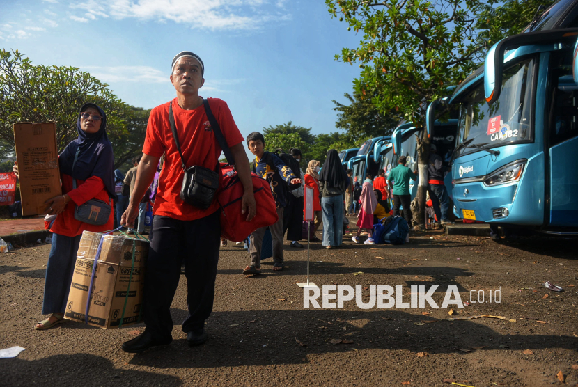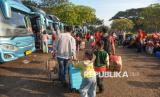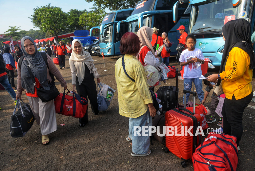 REPUBLIKA.CO.ID, JAKARTA -- Sejumlah peserta mudik menunggu keberangkatan bus saat mengikuti program Serunya Mudik Bersama Member Alfamidi 2026 di Jakarta, Selasa (16/3/2026).