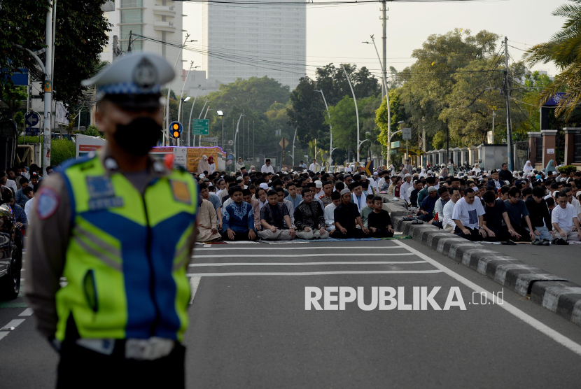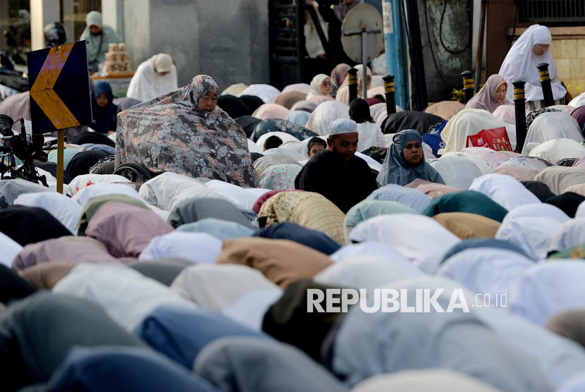 Pelaksanaan sholat Idul Fitri berlangsung khidmat. Jamaah yang mengikuti sholat meluber hingga ke jalan.