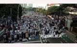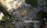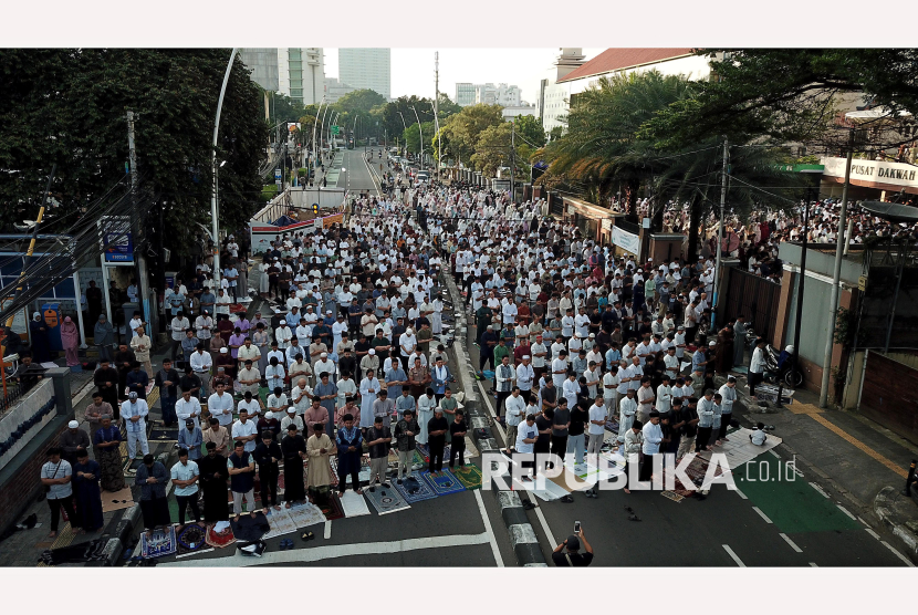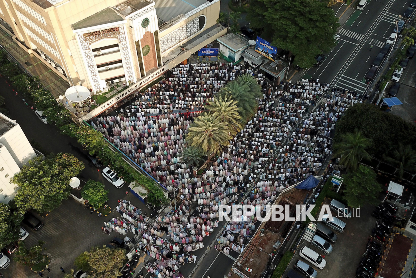 REPUBLIKA.CO.ID, JAKARTA Warga Muhammadiyah menunaikan Sholat Idul Fitri 1447 di pelataran Gedung Pimpinan Pusat (PP) Muhammadiyah, Menteng, Jakarta Pusat, Jumat (20/3/2026).