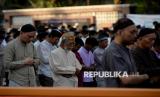Penasihat Khusus Presiden Bidang Haji Muhadjir Effendy mengikuti Sholat Idul Fitri 1447 H di pelataran Gedung Pimpinan Pusat (PP) Muhammadiyah, Menteng, Jakarta Pusat, Jumat (20/3/2026). Warga Muhammadiyah melaksanakan Sholat Idul Fitri pada hari Jumat (20/3) atau satu hari lebih awal dari ketetapan Pemerintah yang jatuh pada Sabtu (21/3). (FOTO : Edwin Putranto/Republika)