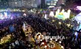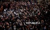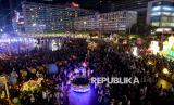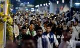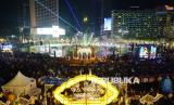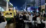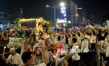 Warga memadati kegiatan Jakarta Bedug Kolosal menyambut Hari Raya Idul Fitri 1447 Hijiriah di Jalan MH Thamrin dan Bundaran HI, Jakarta, Jumat (20/3/2026). Acara yang melibatkan sekitar 1.000 bedug dari ratusan kelurahan dan 5.000 peserta pawai obor ini menjadi ruang kebersamaan warga sekaligus memperkuat harmoni sosial, budaya, dan pariwisata di Jakarta. (FOTO : Edwin Putranto/Republika)