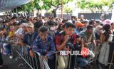 Warga pingsan saat mengantre untuk menghadiri Gelar Griya di Istana Kepresidenan, Jakarta, Sabtu (21/3/2026). Presiden Prabowo Subianto menggelar Gelar Griya Idulfitri 1447 Hijriah di Istana Kepresidenan bagi masyarakat umum. Sekitar 5.000 orang menghadiri gelar griya tersebut yang berlangsung sejak siang hingga sore hari. (FOTO : Republika/Prayogi)