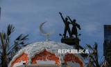 Lanskap langit Jakarta tampak berwarna biru terlihat di wilayah Jakarta Pusat, Senin (23/3/2026). Kondisi langit biru tersebut terjadi seiiring dengan berkurangnya jumlah polutan akibat menurunnya mobilitas masyarakat pada libur hari raya idul fitri 1447 Hijriah. Meski demikian, berdasarkan data dari Air Quality Index (AQI) kondisi kualitas udara Jakarta pada Senin (23/3) pagi mencapai 134 atau berada di level sedang hingga tidak sehat bagi kelompok rentan. Data tersebut mencatat tingginya angka polusi udara masih didominasi oleh partike halus PM2.5 yang menjadi faktor utama penurunan kualitas udara di Ibu Kota. (FOTO : Republika/Thoudy Badai)