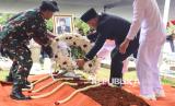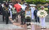 REPUBLIKA.CO.ID, JAKARTA -- Personel TNI membawa jenazah mantan Menteri Pertahanan Juwono Sudarsono untuk dimakamkan di Taman Makam Pahlawan Nasional Utama (TMPNU) Kalibata, Jakarta, Ahad (29/3/2026).