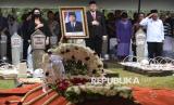 Keluarga memberi hormat di depan makam mendiang mantan Menteri Pertahanan Juwono Sudarsono saat upacara pemakaman di Taman Makam Pahlawan Nasional Utama (TMPNU) Kalibata, Jakarta, Ahad (29/3/2026). Mantan Menteri Pertahanan Kabinet Indonesia Bersatu di era pemerintahan Susilo Bambang Yudhoyono tersebut wafat di usia 84 tahun setelah menjalani perawatan di RS Pondok Indah, Jakarta. (FOTO : ANTARA FOTO/Indrianto Eko Suwarso)