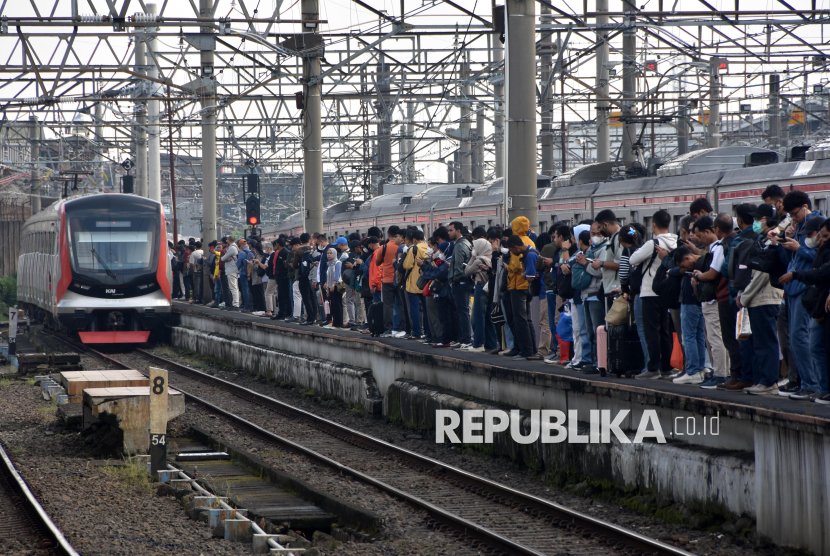 REPUBLIKA.CO.ID, BOGOR -- Sejumlah penumpang antre menunggu kedatangan KRL Commuter Line saat hari pertama kerja pascalibur Lebaran di Stasiun Bogor, Jawa Barat, Senin (30/3/2026).