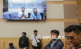 Layar menampilkan terdakwa kasus dugaan korupsi anggaran proyek video profil desa Amsal Christy Sitepu saat Rapat Dengar Pendapat Umum (RDPU) bersama Komisi III DPR secara daring di Kompleks Parlemen, Senayan, Jakarta, Senin (30/3/2026). Komisi III DPR menyatakan secara substantif kerja kreatif videografer tidak memiliki harga tertentu sehingga tidak bisa dikatakan terjadi penggelembungan atau mark up dari harga baku serta menyerukan agar Majelis Hakim mempertimbangkan putusan bebas atau setidaknya ringan berdasarkan fakta persidangan. (FOTO : Republika/Thoudy Badai)
