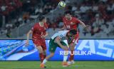 Pemain Timnas Indonesia Jay Idzes berebut bola dengan pemain Bulgaria saat pertandingan final FIFA Series 2026 di Stadion Utama Gelora Bung Karno, Senayan, Jakarta, Senin (30/3/2026). Indonesia kalah dari Bulgaria dengan skor 0-1. (FOTO : Edwin Putranto/Republika)