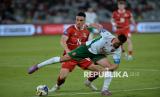 Pemain Timnas Indonesia Ragnar Oratmangun berebut bola dengan pemain Bulgaria saat pertandingan final FIFA Series 2026 di Stadion Utama Gelora Bung Karno, Senayan, Jakarta, Senin (30/3/2026). Indonesia kalah dari Bulgaria dengan skor 0-1. (FOTO : Edwin Putranto/Republika)