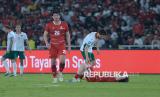 Pemain Timnas Indonesia Ole Romeny terjatuh setelah dijegal pemain Bulgaria saat pertandingan final FIFA Series 2026 di Stadion Utama Gelora Bung Karno, Senayan, Jakarta, Senin (30/3/2026). Indonesia kalah dari Bulgaria dengan skor 0-1. (FOTO : Edwin Putranto/Republika)