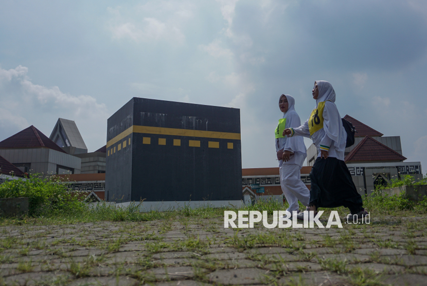 Dua orang calon haji mengikuti serangkaian tes kebugaran di Islamic Center Batang, Banyuputih, Kabupaten Batang, Jawa Tengah, Senin (30/3/2026). Pemerintah setempat memfasilitasi tes kebugaran jasmani sebanyak 945 calon haji yang dibagi selama dua hari tes dengan metode tes jalan Rockport yang bertujuan untuk mengetahui kemampuan ketahanan dan kekuatan fisik jamaah sebelum melakukan berbagai aktivitas ibadah haji di Tanah Suci. (FOTO : ANTARA FOTO/Harviyan Perdana Putra)