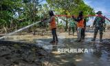 REPUBLIKA.CO.ID, DEMAK -- Petugas BPBD Demak bersama prajurit TNI membersihkan material tanah yang menutup akses jalan kampung pascabanjir bandang akibat jebolnya tanggul Sungai Tuntang di Dukuh Solondoko, Desa Trimulyo, Kecamatan Guntur, Demak, Jawa Tengah, Senin (6/4/2026).