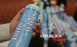 Barang bukti gas dinitrogen monoksida (N20) bermerk Baby Whip dan perangkat tambahannya ditunjukan saat konferensi pers penindakan pengedaran produk gas medis dinitrogen monoksida (N20) atau gas tertawa di Kantor BPOM, Jakarta, Kamis (9/4/2026). Badan Pengawas Obat dan Makanan (BPOM) mengamankan puluhan gas tertawa atau gas dinitrogen monoksida (N20) yang dijual secara ilegal di marketplace dari rumah di kawasan Cengkareng, Jakarta Barat. Sebagai tindak lanjut, perkara tersebut sedang diproses secara hukum atas dugaan pelanggaran produksi dan pengedaran sediaan farmasi dan alat kesehatan yang tidak memenuhi ketentuan dan mutu. Hal tersebut dilakukan mengingat, gas tersebut dapat berbahaya jika disalahgunakan dan tidak sesuai anjuran medis. (FOTO : Republika/Thoudy Badai)