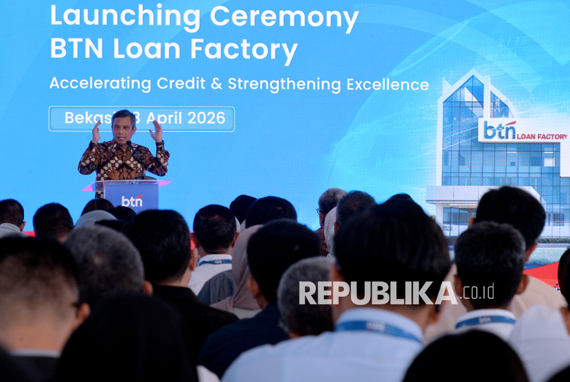 Direktur Utama BTN Nixon LP Napitupulu memberikan sambutan saat peresmian BTN Loan Factory di Bekasi Jawa Barat, Senin (13/4/2026). PT Bank Tabungan Negara (Persero) Tbk meluncurkan Loan Factory untuk memangkas proses pengajuan KPR menjadi lebih singkat. Sistem ini ditargetkan memangkas waktu proses dari rata-rata enam hari kerja. Transformasi ini menjadi langkah BTN mempercepat ekspansi kredit tanpa mengorbankan kualitas. (FOTO : Edwin Putranto/Republika)