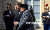 REPUBLIKA.CO.ID, PARIS -- Presiden Prabowo Subianto disambut Presiden Prancis Emmanuel Macron saat bertemu di Istana Elysee, Paris, Prancis, Selasa (14/4/2026).
