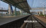Suasana Stasiun Jakarta International Stadium (JIS), Jakarta, Rabu (15/4/2026). Stasiun JIS ditargetkan mulai beroperasi melayani penumpang KRL pada Juni 2026 dengan rute Tanjung Priok–Jakarta Kota. Diharapkan, stasiun ini dapat mendukung mobilitas masyarakat menuju kawasan olahraga dan permukiman di sekitarnya. Pembangunan Stasiun JIS saat ini telah memasuki tahap akhir dan diharapkan selesai tepat waktu sehingga stasiun siap diuji coba sebelum resmi beroperasi. (FOTO : Republika/Prayogi)
