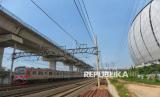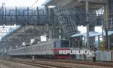 Rangkaian KRL Commuterline melintasi Stasiun Jakarta International Stadium (JIS), Jakarta, Rabu (15/4/2026). Stasiun JIS ditargetkan mulai beroperasi melayani penumpang KRL pada Juni 2026 dengan rute Tanjung Priok–Jakarta Kota. Diharapkan, stasiun ini dapat mendukung mobilitas masyarakat menuju kawasan olahraga dan permukiman di sekitarnya. Pembangunan Stasiun JIS saat ini telah memasuki tahap akhir dan diharapkan selesai tepat waktu sehingga stasiun siap diuji coba sebelum resmi beroperasi. (FOTO : Republika/Prayogi)