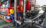 REPUBLIKA.CO.ID, JAKARTA -- Petugas memeriksa isi muatan truk pengangkut BBM di Integrated Terminal Jakarta (ITJ), Plumpang, Jakarta Utara, Jumat (17/4/2026).