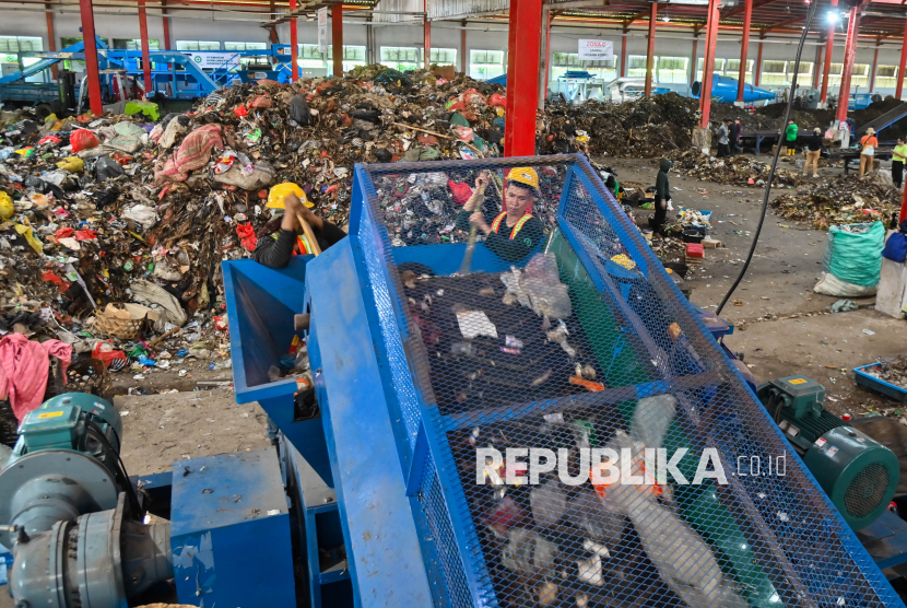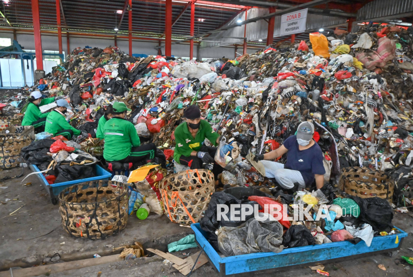 REPUBLIKA.CO.ID, DENPASAR -- Pekerja memilah sampah di Tempat Pengolahan Sampah Terpadu (TPST) Tahura, Denpasar, Bali, Jumat (17/4/2026).