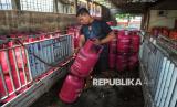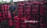 Pekerja menata tabung gas LPG nonsubsidi di agen di Kawasan Pasar Rebo, Jakarta, Senin (20/4/2026). PT Pertamina Patra Niaga menetapkan harga baru produk Liquefied Petroleum Gas (LPG) nonsubsidi untuk tabung 5,5 kg naik sebesar Rp17.000 atau menjadi Rp107.000 per tabung, dan tabung 12 kg menjadi Rp228.000 atau mengalami kenaikan Rp36.000 dari harga sebelumnya. Kenaikan harga LPG tersebut merupakan yang pertama sejak 2023. (FOTO : Republika/Prayogi)
