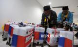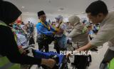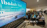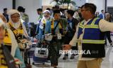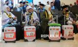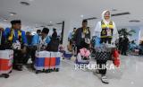 Jamaah calon haji kloter pertama embarkasi Banten tiba di Bandara Soekarno Hatta, Tangerang, Banten, Rabu (22/4/2026). Sebanyak 391 jamaah kloter pertama dari embarkasi Banten secara resmi dilepas oleh Menteri Haji dan Umroh M Irfan Yusuf didampingin oleh Wakil Ketua DPR RI Sufmi Dasco untuk diberangkatkan ke Tanah Suci Mekah. (FOTO : Republika/Thoudy Badai)