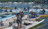 Sejumlah nelayan bersiap mengikuti parade perahu nelayan saat Festival Pulau Bokori, Kabupaten Konawe, Sulawesi Tenggara, Sabtu (25/4/2026). Festival yang digelar sebagai salah satu rangkaian dalam menyemarakkan Hari Ulang Tahun ke-62 Sulawesi Tenggara tersebut guna mendorong promosi wisata Pulau Bokori sebagai salah satu destinasi wisata unggulan sekaligus ajang mengangkat potensi lokal yang dimiliki wilayah itu. (FOTO : ANTARA FOTO/Andry Denisah)