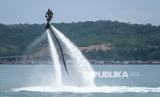 Gubernur Sultra Andi Sumangerukka menampilkan atraksi fly air saat Festival Pulau Bokori, Kabupaten Konawe, Sulawesi Tenggara, Sabtu (25/4/2026). Festival yang digelar sebagai salah satu rangkaian dalam menyemarakkan Hari Ulang Tahun ke-62 Sulawesi Tenggara tersebut guna mendorong promosi wisata Pulau Bokori sebagai salah satu destinasi wisata unggulan sekaligus ajang mengangkat potensi lokal yang dimiliki wilayah itu. (FOTO : ANTARA FOTO/Andry Denisah)