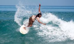 Kegiatan berselancar mengenakan kebaya diikuti 20 peserta.