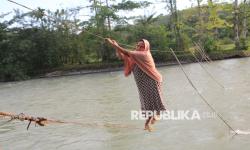 Warga menggunakan jembatan tali untuk mempersingkat jarak tempuh.