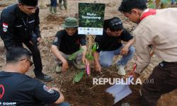 Siswa dan anggota komunitas melakukan penanaman pohon di kawasan Puncak.